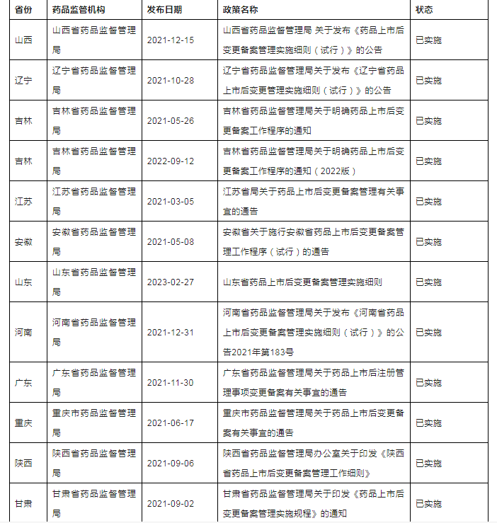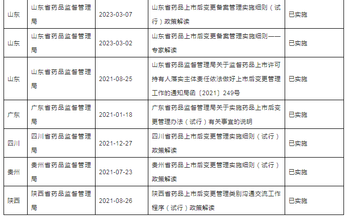 三、全国各省局上市后变更相关配套文件发布清单
